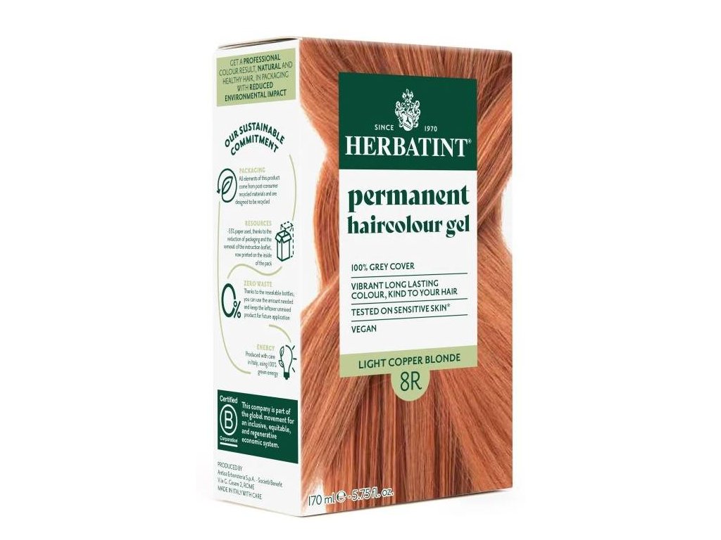 Herbatint - permanentní barva na vlasy světle měděná blond 8R